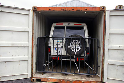 unseren LandCruiser in einen Container zu laden und diesen dann rechtzeitig der